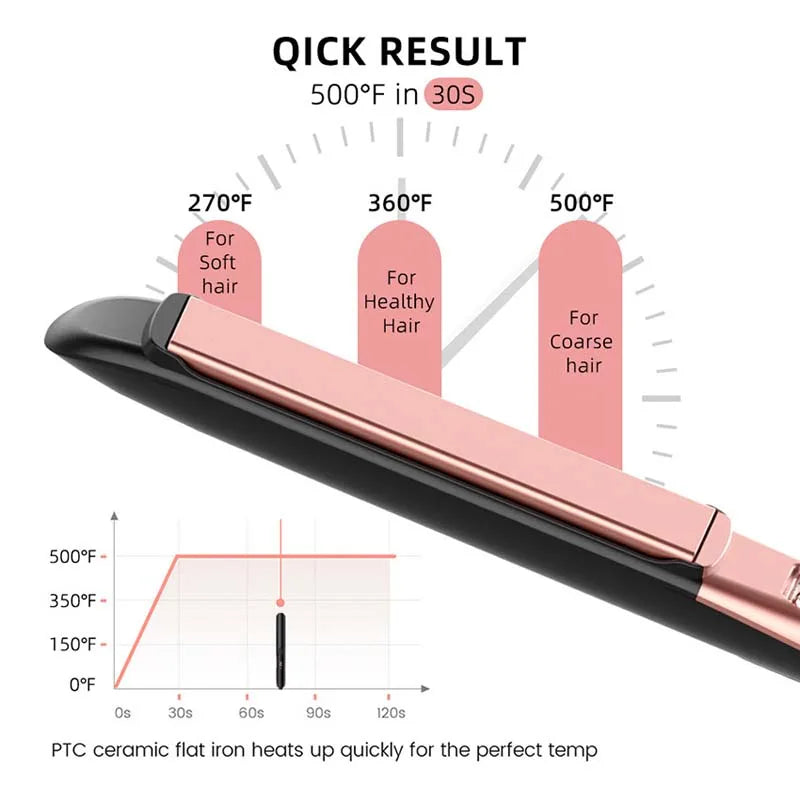 Adjustable from 160°C to 240°C+, allowing you to tailor the heat to your hair’s needs for safe, effective styling.